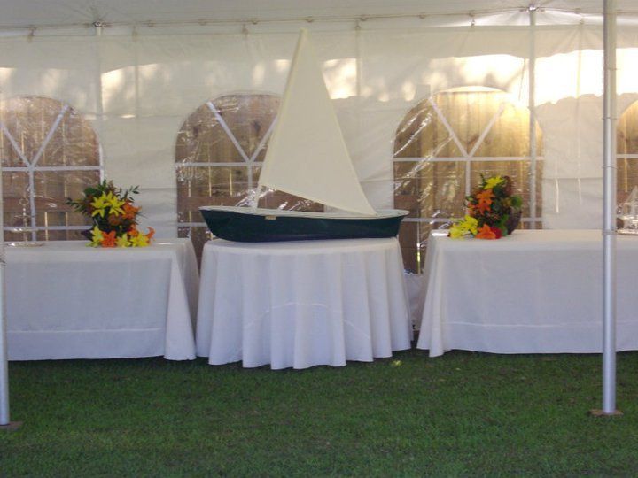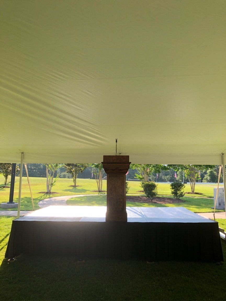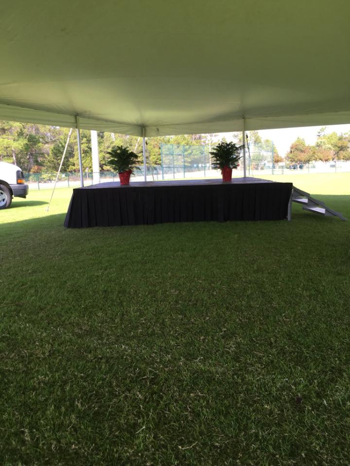 18 X 80 FRAME TENT, SHEER CURTAINS , DANCE FLOOR AND CHANDELIER