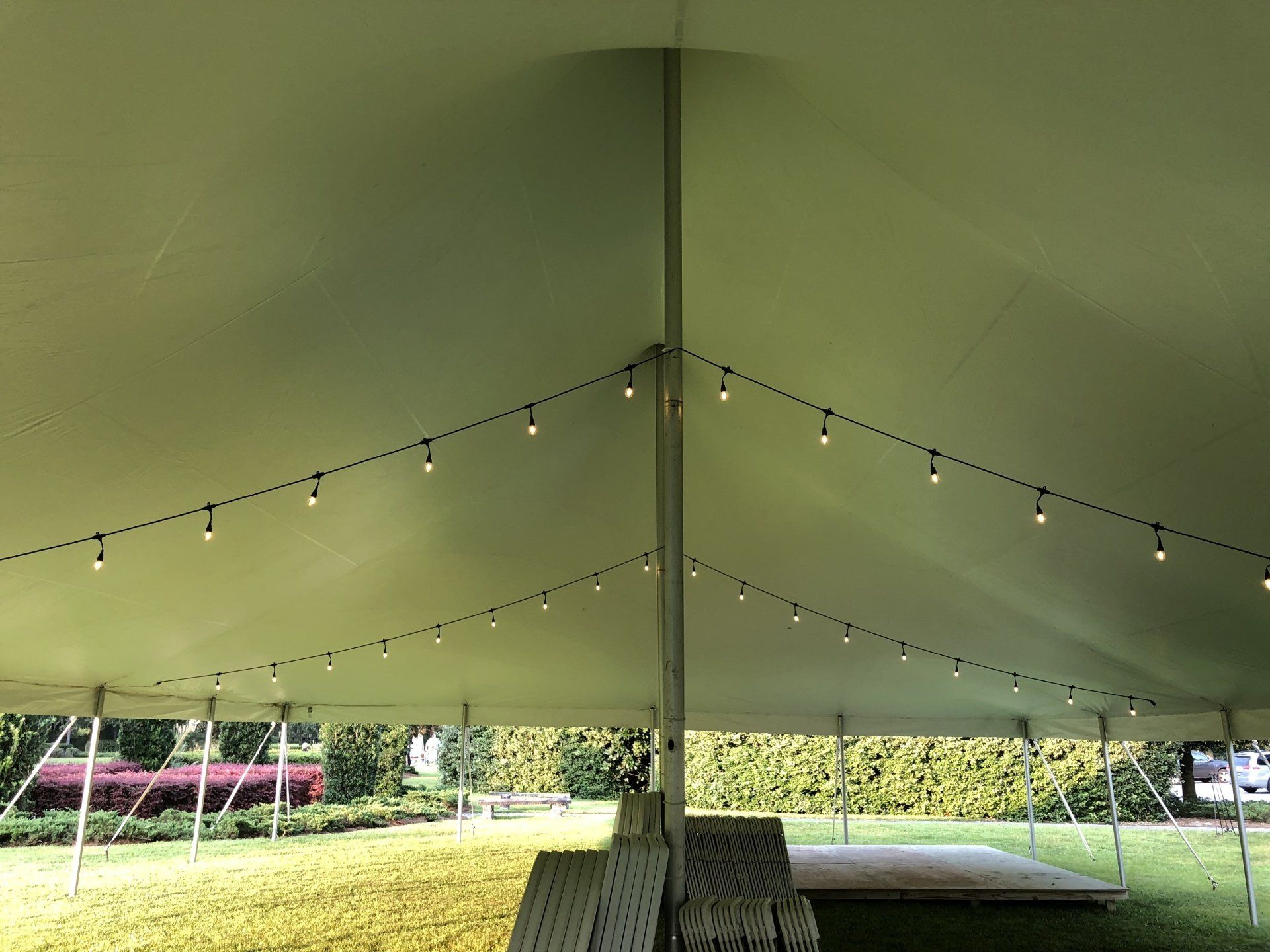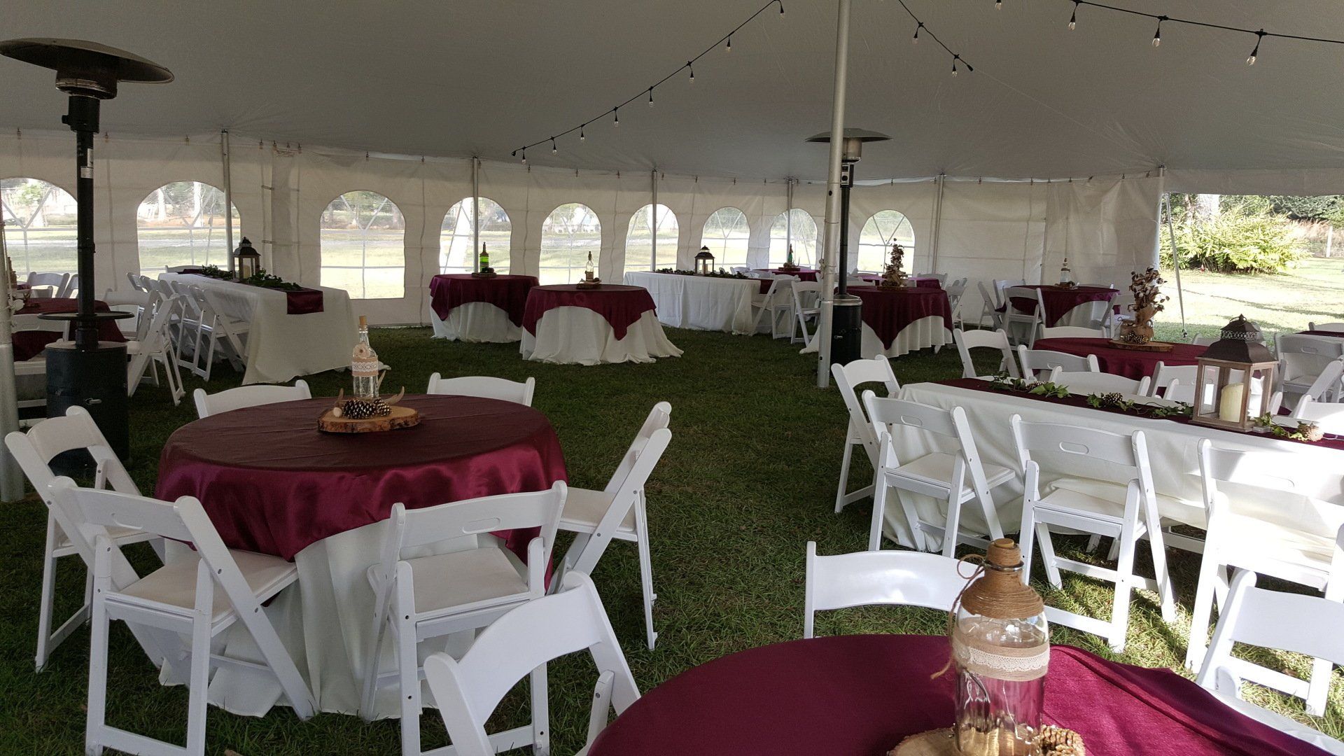 40 X 60 TENT WITH TABLES, CHAIRS, LINENS, HEATERS AND EDISON LIGHTING